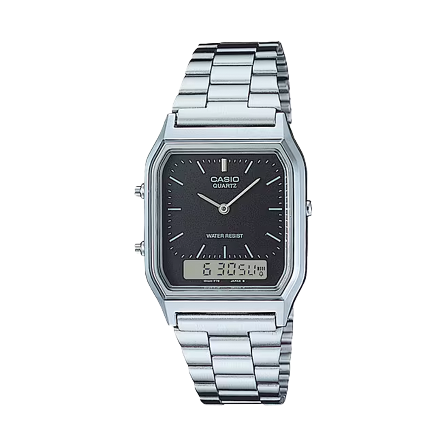 - 12/24-Stundenformat Regelmäßige Zeiterfassung: Analog: 2 Zeiger (Stunden, Minuten) Digital: Stunden, Minuten, Sekunden, 12 Stunden (pm), Monat, Datum, Tag