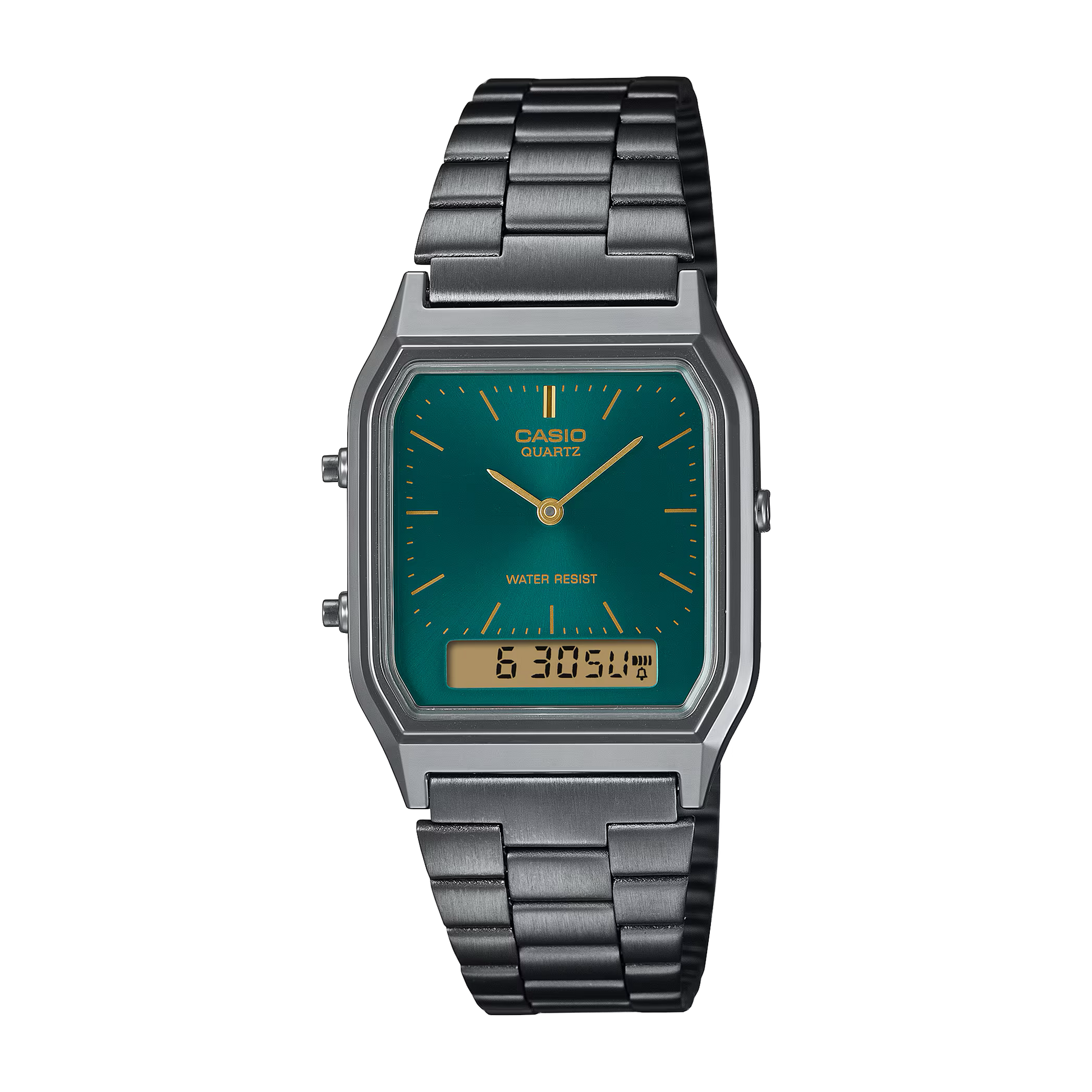 Die klassische und beliebte Analog-Digital-Kombination in neuen Farbtönen. Das Sonnenschliff Finish des Zifferblatts verleiht dem ikonischen Design eine farbenfrohe aber auch elegante Note.