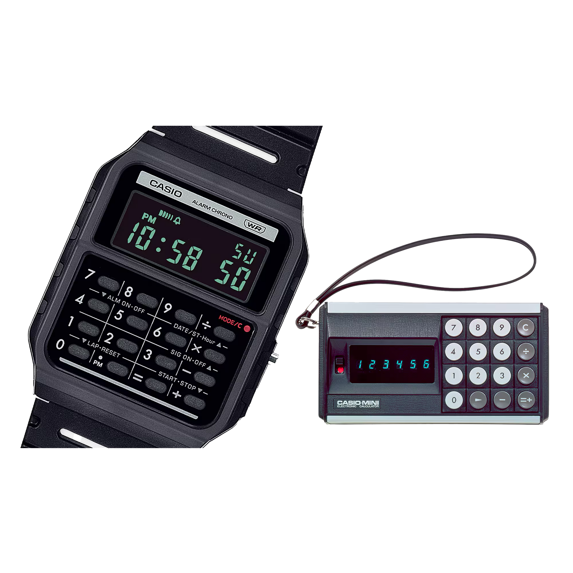 Erwecke deinem Retro-Stil mit einem Zeitmesser im Stil des Casio Mini, dem bahnbrechenden Taschenrechner von Casio.