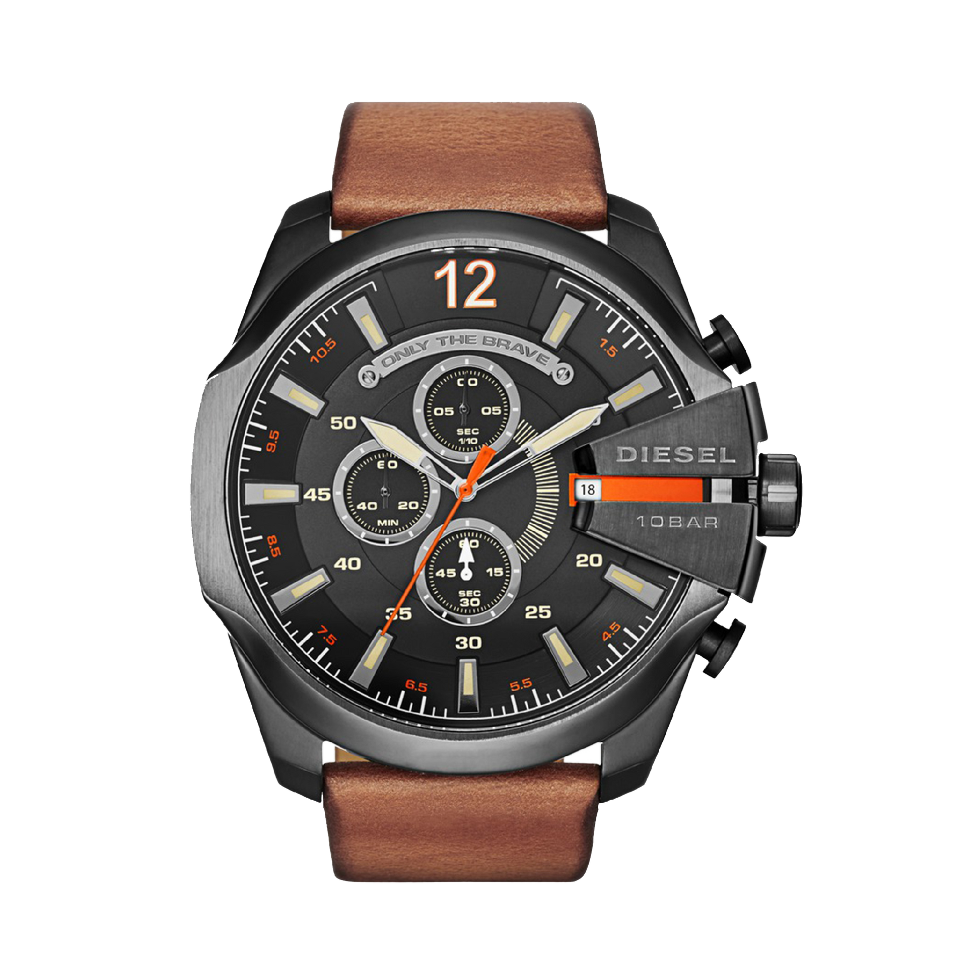 Die markante Herrenuhr DZ4343 aus der Mega Chief Kollektion von Diesel überzeugt mit einem kraftvollen und maskulinen Design. Das große Gehäuse in Kombination mit dem braunen Lederarmband verleiht der Uhr eine starke Präsenz am Handgelenk, während das mehrschichtige Zifferblatt mit Chronographenfunktion und Datumsanzeige für eine sportlich-technische Optik sorgt. Angetrieben von einem präzisen Quarzwerk und gefertigt aus robustem Edelstahl, bietet dieses Modell Zuverlässigkeit im Alltag und bei besonderen Anlässen. Die Wasserdichtigkeit bis 10 Bar macht die Uhr zudem zu einem vielseitigen Begleiter, der Funktionalität und markantes Design perfekt vereint.