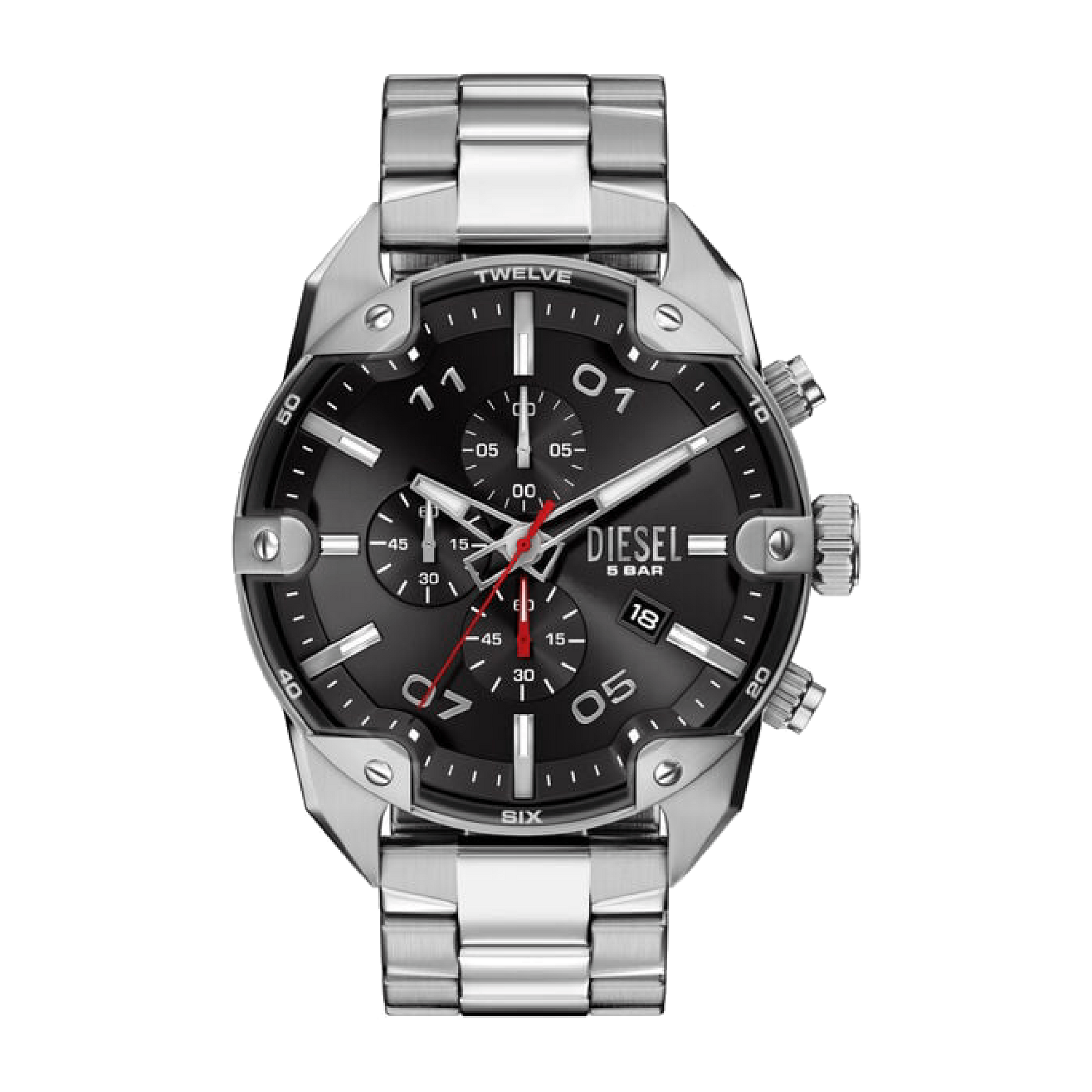 Die markante Armbanduhr DZ4709 aus dem Hause Diesel überzeugt mit einem kraftvollen und modernen Design. Das silberfarbene Edelstahlgehäuse in Kombination mit dem passenden Edelstahlarmband sorgt für eine robuste und zugleich stilvolle Ausstrahlung. Das schwarze Zifferblatt mit Chronographenfunktion verleiht der Uhr eine sportliche Optik und sorgt für eine klare und präzise Ablesbarkeit im Alltag. Durch das Zusammenspiel aus markanten Details und funktionaler Technik wird dieses Modell zu einem ausdrucksstarken Begleiter für verschiedenste Anlässe. Ausgestattet mit einem zuverlässigen Quarzwerk und geschützt durch widerstandsfähiges Mineralglas bietet die Uhr eine ideale Kombination aus Design und Funktionalität.