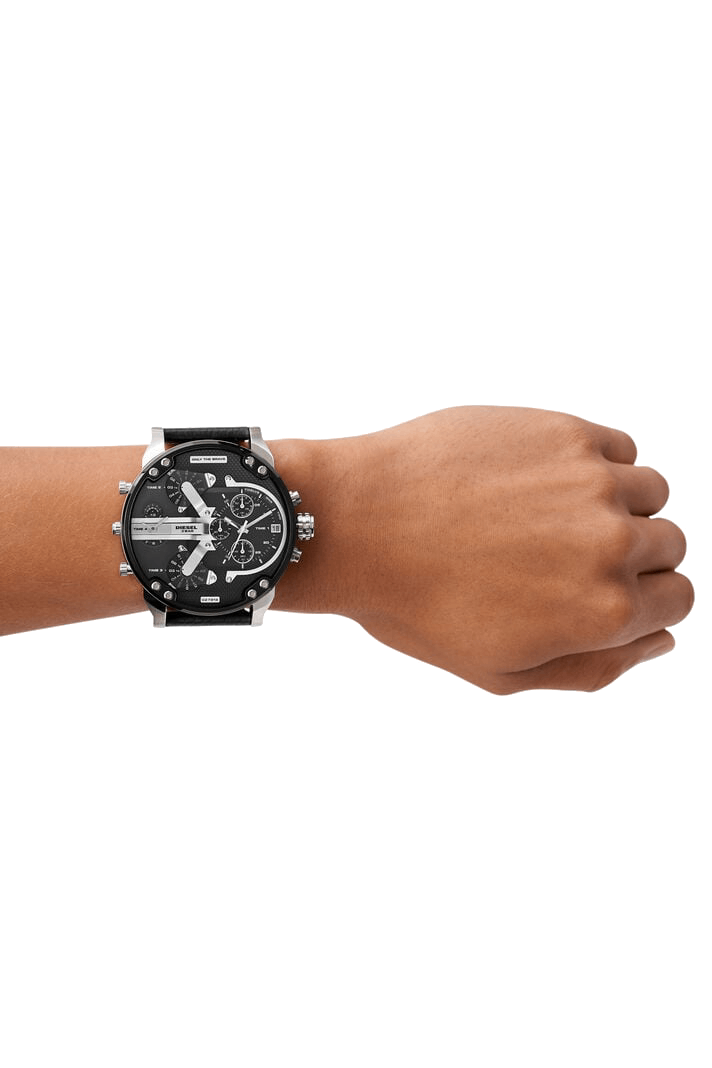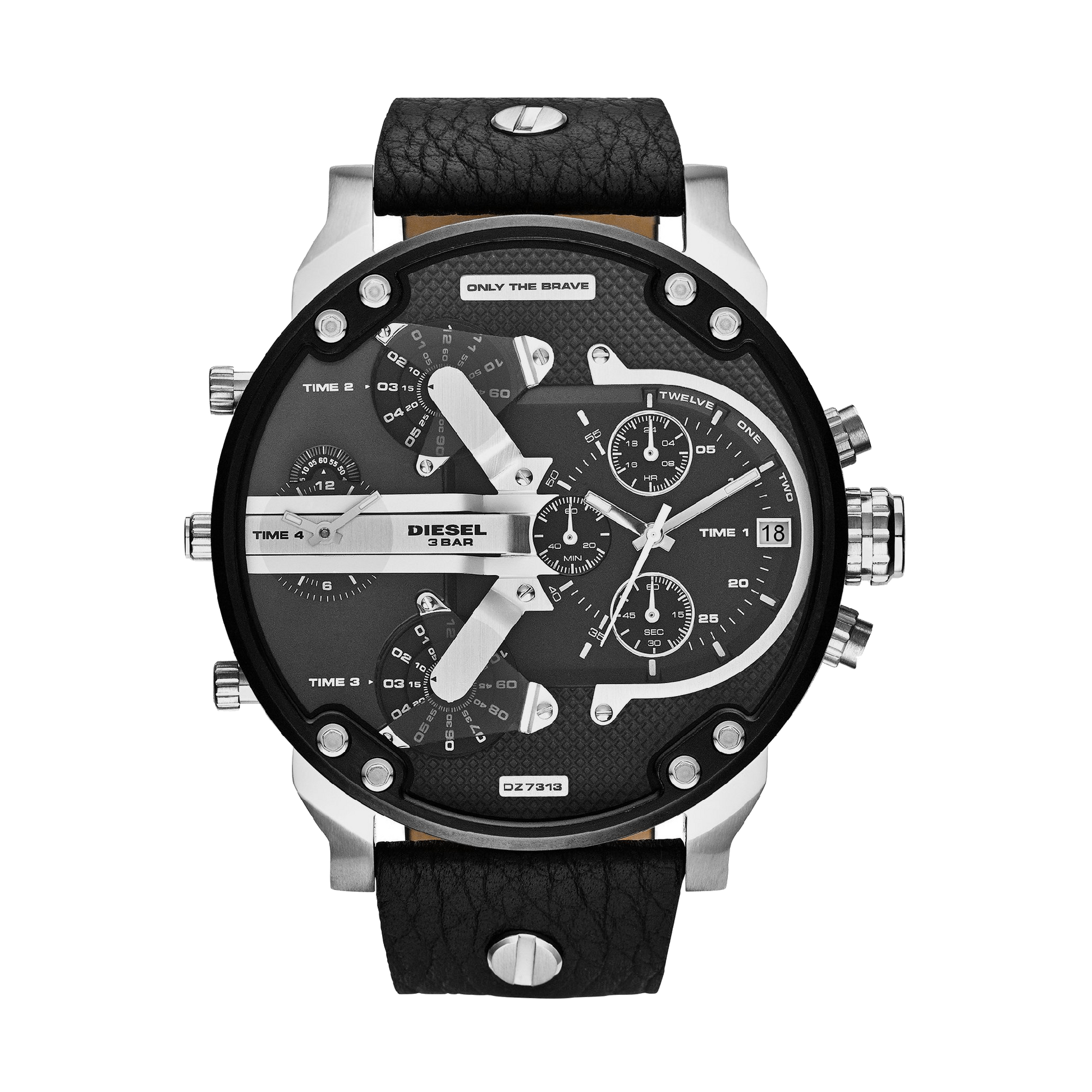 Die markante Armbanduhr DZ7313 aus dem Hause Diesel überzeugt mit einem besonders auffälligen und technisch geprägten Design. Das große Edelstahlgehäuse in Kombination mit dem schwarzen Lederarmband verleiht dem Modell eine kraftvolle und ausdrucksstarke Präsenz am Handgelenk. Das mehrschichtige Zifferblatt mit mehreren Anzeigen und Zeitzonen sorgt für eine komplexe und einzigartige Optik, die sofort ins Auge fällt. Die integrierte Chronographenfunktion ergänzt das Modell um praktische Funktionen, während das präzise Quarzwerk und das robuste Mineralglas für Zuverlässigkeit im Alltag sorgen. Dieses Design steht für Individualität und setzt ein deutliches Statement.