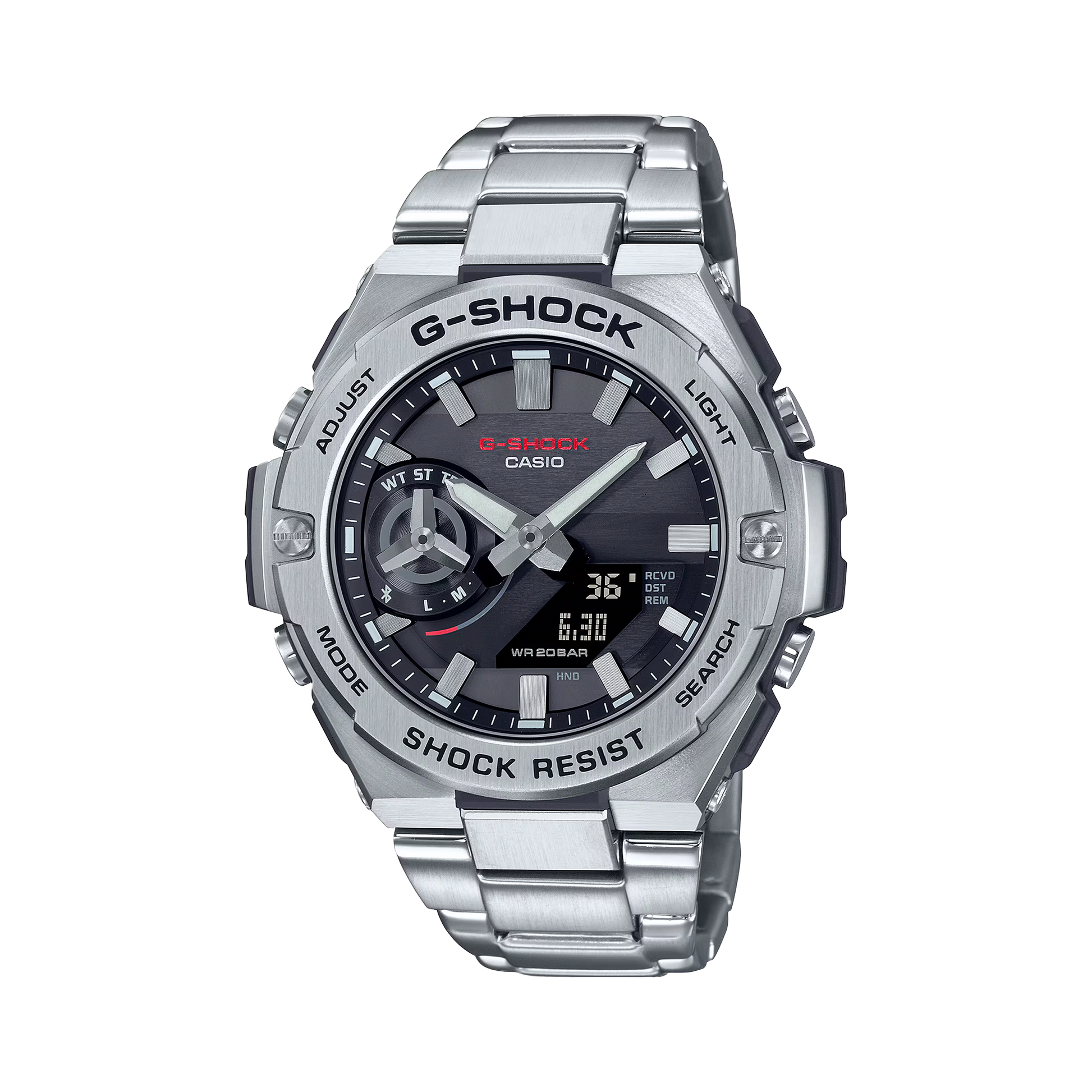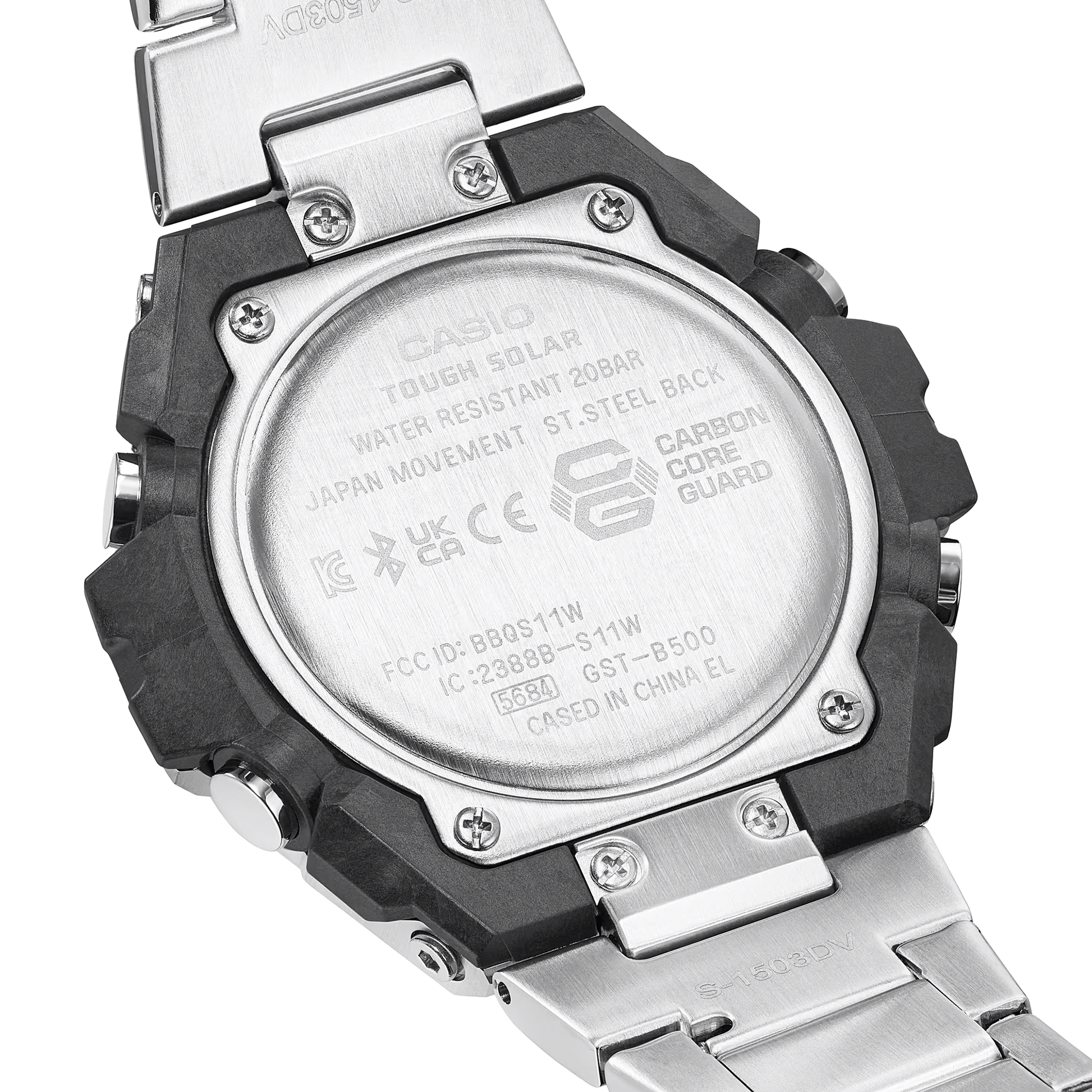 Die GST-B500-Linie vereint kleinere Komponenten und eine hochdichte Halterung und bietet weiterhin Bluetooth-Konnektivität und Solarstromaufladung, aber in einem noch schlankeren Profil. Der Carbon Core Guard absorbiert äußere Stöße und sorgt so für echte G-STEEL-Robustheit, und die bequeme Passform ergänzt Ihren einzigartigen Lebensstil. Der verkleinerte Tastenschutz bietet schlanke und dennoch große Tasten, die leicht zu bedienen sind.