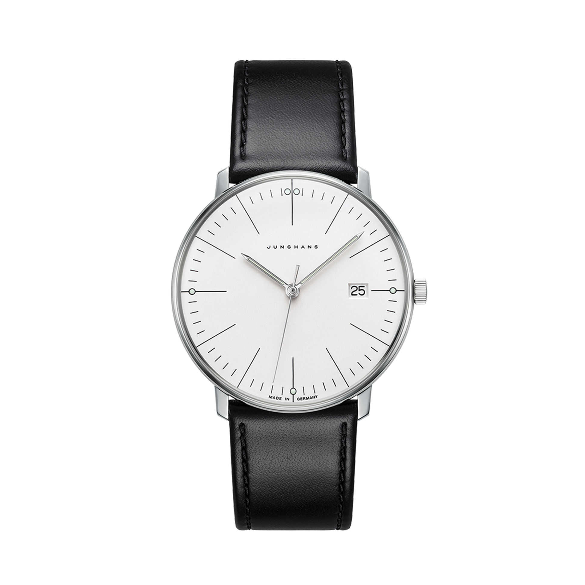 - Zifferblatt: Versilbert matt, Minuterie und Zeiger mit umweltfreundlicher Leuchtmasse